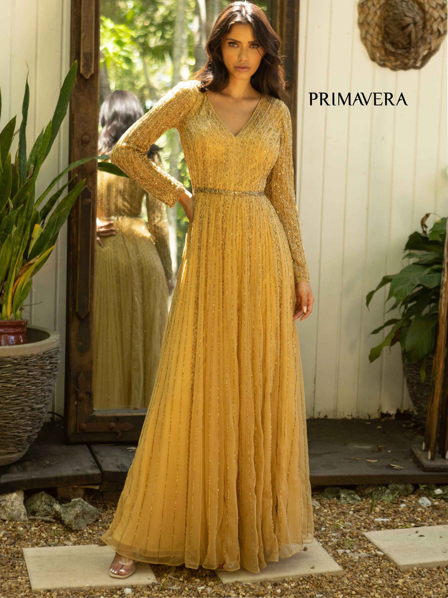 Primavera formal dresses are SOPHISTICATED, ELEGANT, TIMELESS! Dazzling beadwork, intricate sequins, and figure-hugging silhouettes. Whether you want a dramatic mermaid gown, a sleek fitted dress, or a shimmering A-line, Primavera Couture ensures you sparkle all night long.